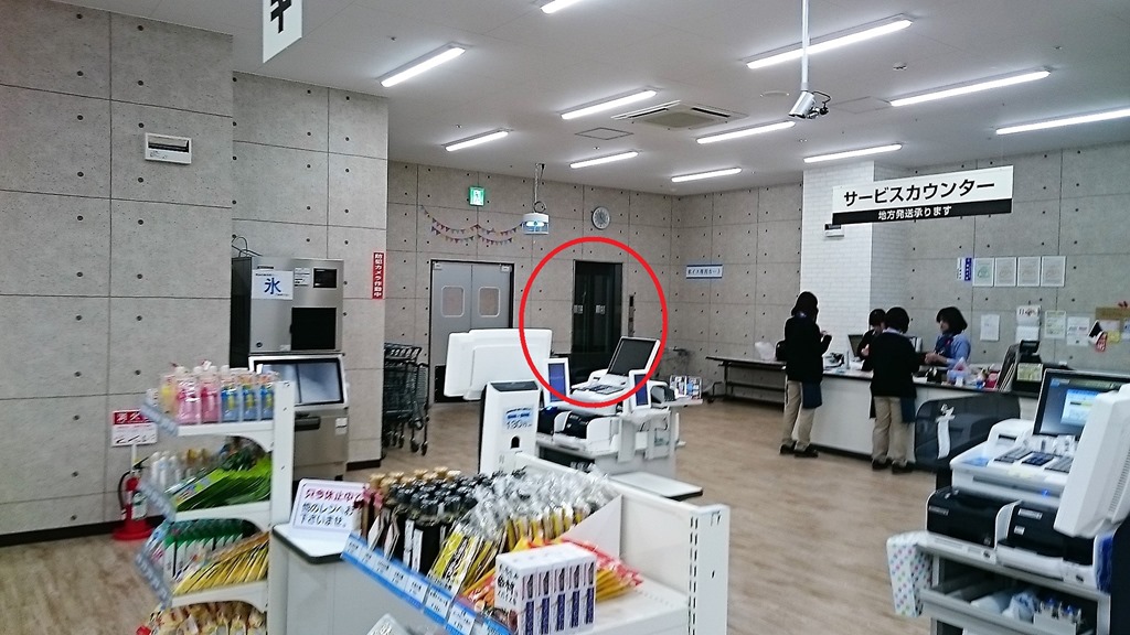 何とこのエレベーターは最近設置されたとのことで、上の写真、ハイウェイオアシス館の「空知の産直市場 そらいち」の赤い丸印の所に出られます。つまり、子どもの国から車イスでも「そらいち」に直接来ることができるようになっていました。
