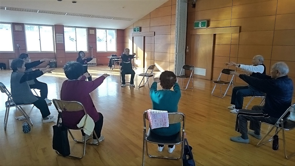 本日は12月の第3金曜日で月に一回の運動サロン「ニコニコ広場」の日でした。いつものように、いきいき運動推進員のお二人のボランティアさんの指導で一時間たっぷりと体を動かしました。