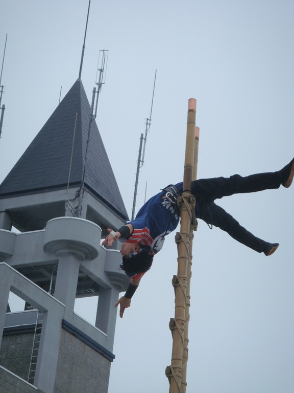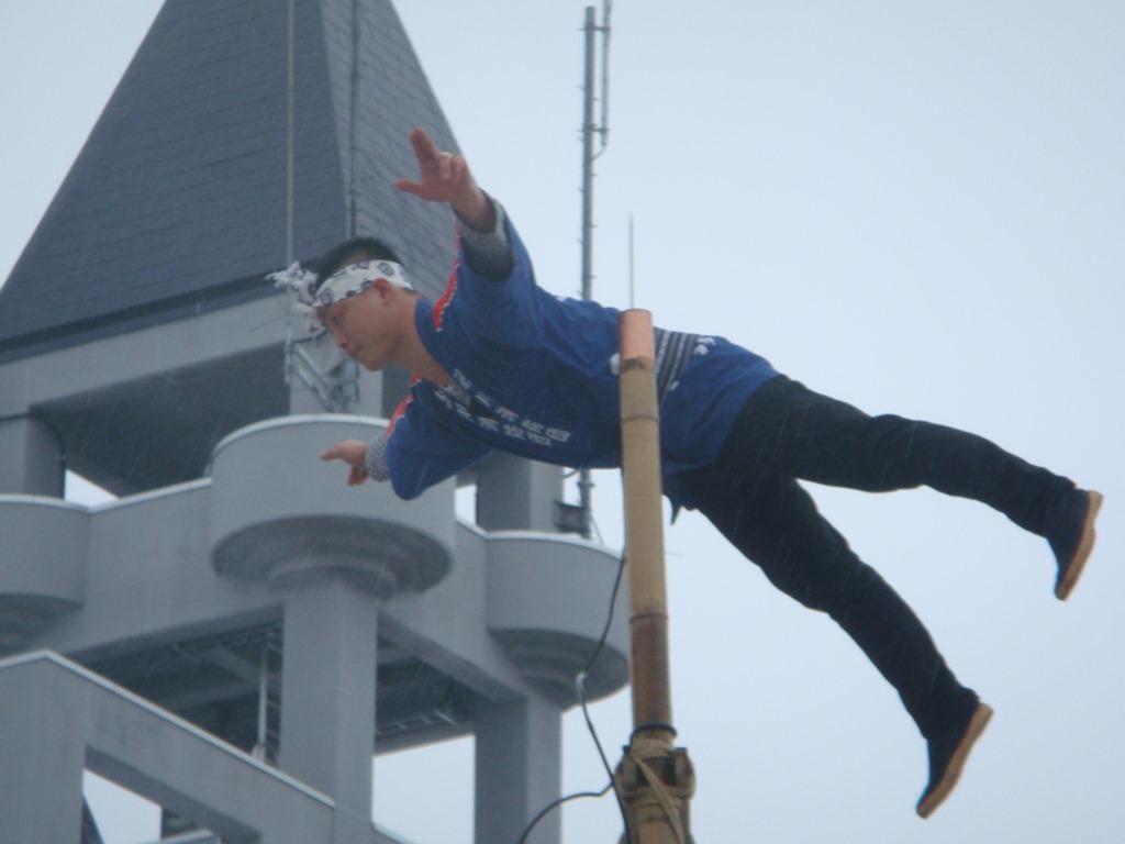 いつも書いているのですが、これだけの、しかも3人の若き消防団の演技を、もう少し暖かい環境の中で多くの市民の皆さんに見てもらいたいと思います。夏休みに行われる「市民防火の集い」では無理なのでしょうか・・・。