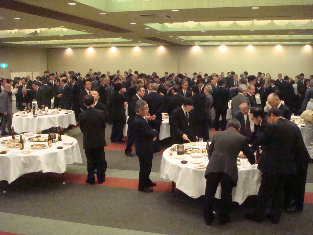 上の写真はステージの上から写しましたが、出席者名簿では300名弱のお名前がありました。本当は、この懇親会に入る前に東議長の祝杯があるのですが、本日は飯沢副議長の祝杯でした。