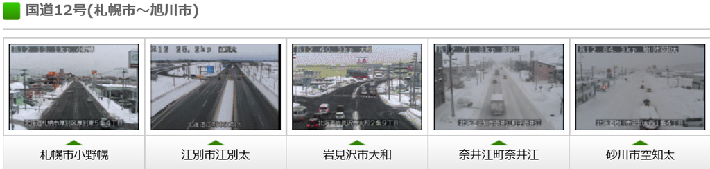 上の写真は午後4時49分更新された北海道開発局の国道ライブカメラ画像です。本当に札幌、岩見沢は路面が出ているのですネ!