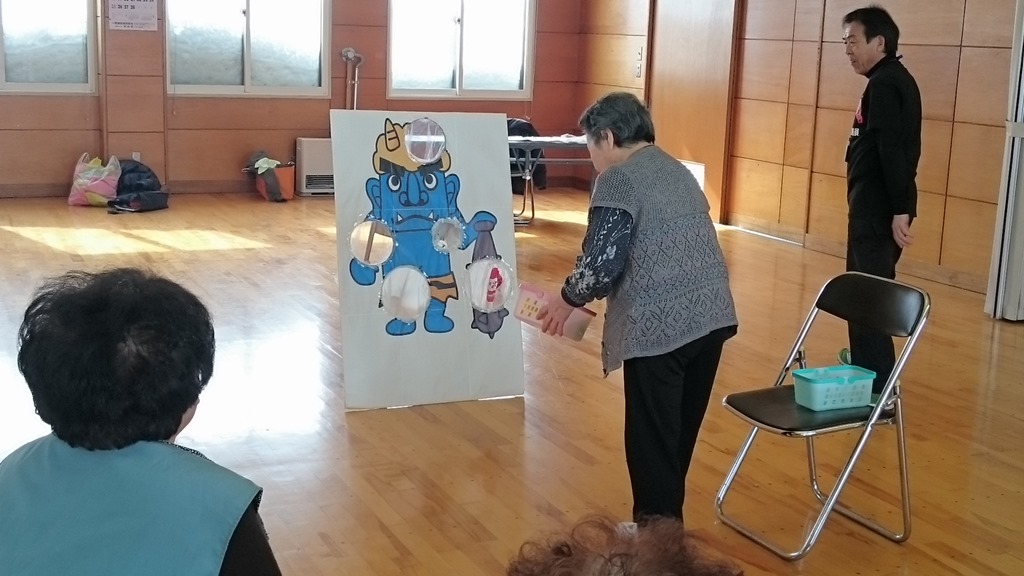 屋根の雪下ろしは取り合えず終了して、「ニコニコ広場」に戻ると偶数月のお楽しみ。社会福祉協議会の職員さんによるリクリエーションタイムです。