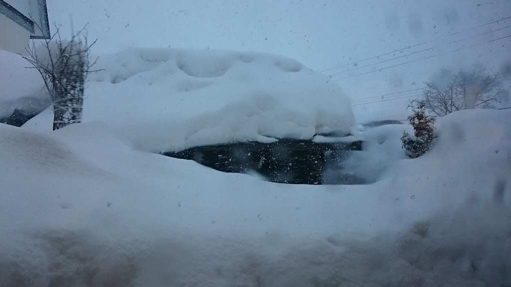 我が家の前の道路は幹線道路になっているので、グチャグチャの解消のためブルドーザーが入りましたが、今度は削ったところとの大きな段差で大変なことに。雪との闘いです。