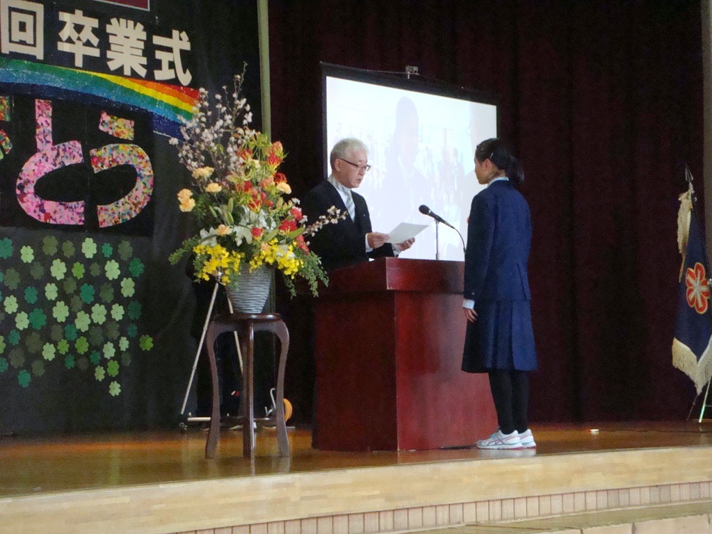 平瀬校長先生は下級生のお世話をした感謝と労いの言葉、そして、中学に飛び立つ卒業生たちにエールを送られていました。