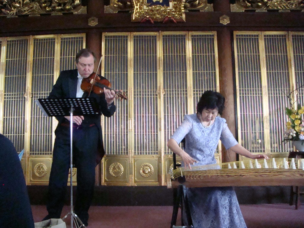 ニキィティンさんと共演するのは札幌在住の小林洋子さん(十七絃)。そして、右の写真は今日のコンサートを主宰する藤堂さと子さん(箏)が林峰男さんと「春の海」を共演しています。