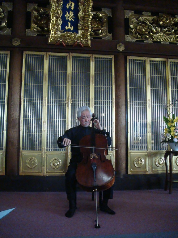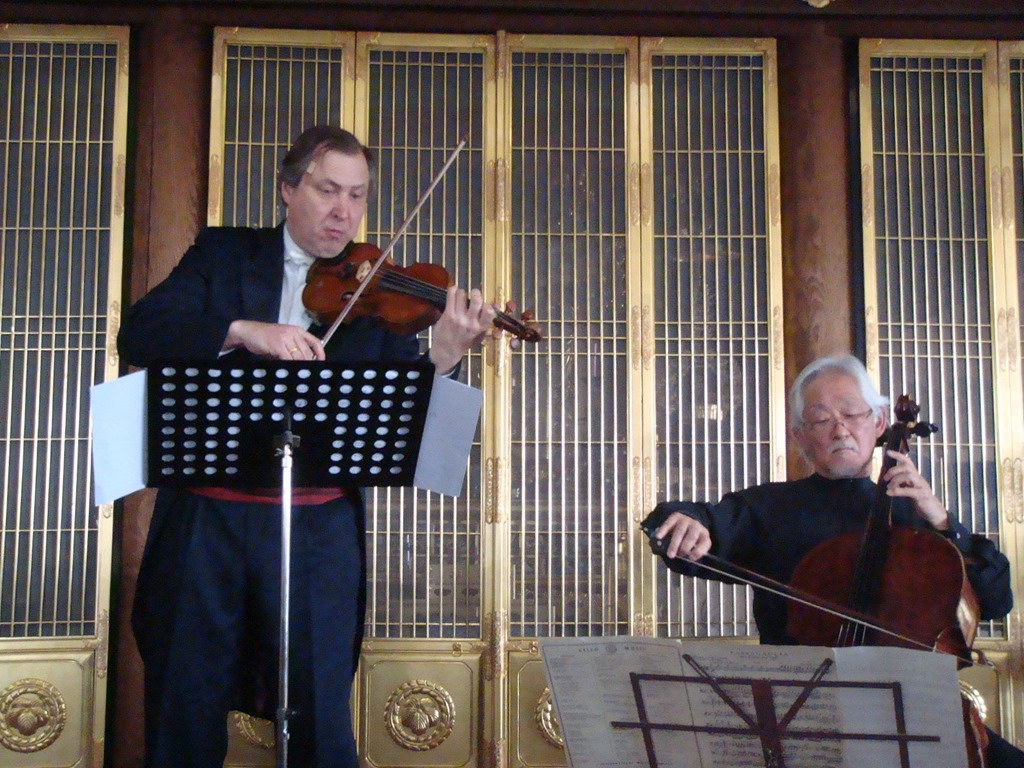 上の写真左はスイス在住の林峰男(チェロ)さん。そして、ヴァイオリンは現在、東京交響楽団第1コンサートマスターのロシア出身ニキティンさんです。