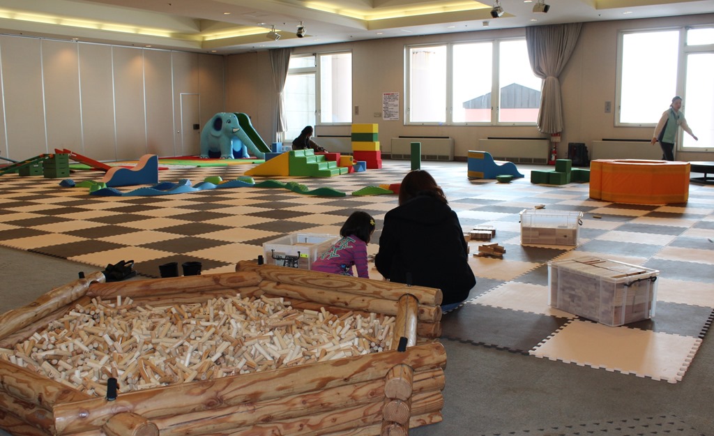 ちょっとタイミングが悪く、お昼時にハイウェイオアシスに行って来ました。ハイウェイオアシス館の2階、子どもの遊ぶスペースでは遊具もグレードアップで「木のプール」がありました(こちらは残念ながら20日まで)。