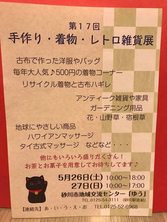 出展者も来場される皆さんも近隣市町ばかりか札幌、旭川、千歳などなど、手作り、古い布、レトロ雑貨などが好きな方々が集結です。