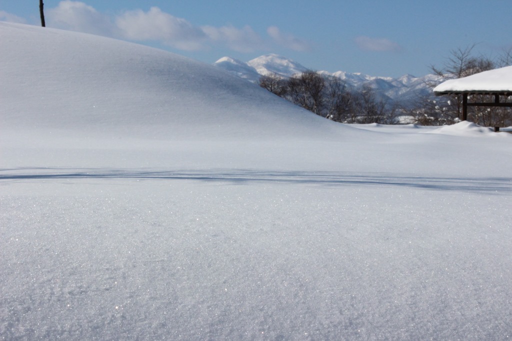続いては、麓に子どもの国がある石山です。輝く雪と遠くに見えるは樺戸連山と最高峰のピンネシリ岳。ピンネシリとはアイヌ語で「男山」という意味だそうです。