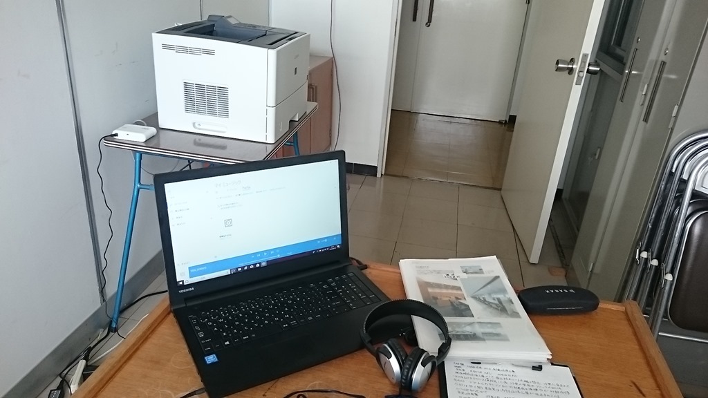 ヘッドフォンは自前ですが、パソコン、プリンターは議会用の物を使います。