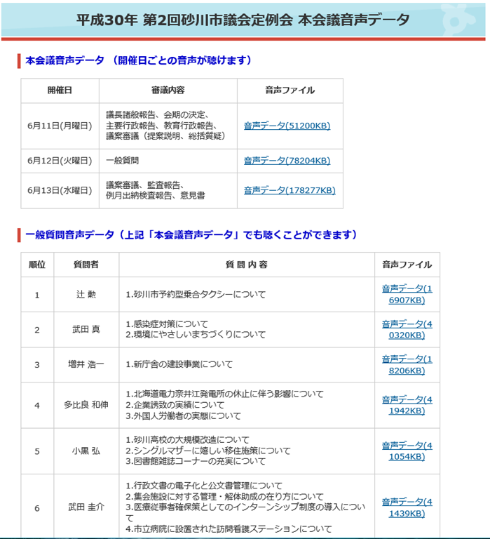 砂川市議会のHPに6月議会の「音声データ」がUPされました。