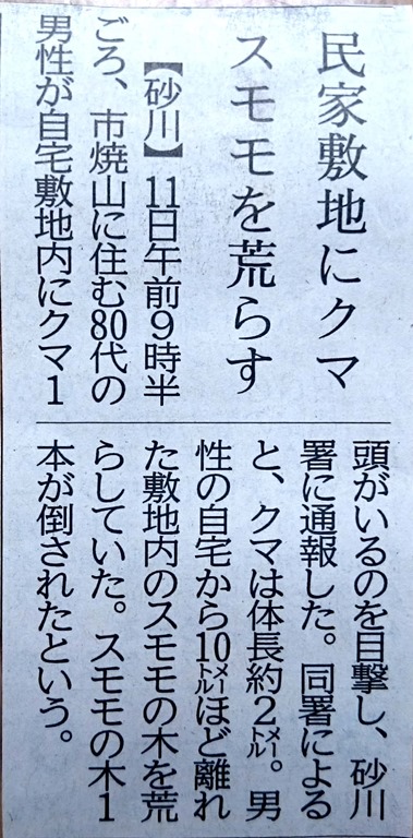 クマ出没の話題は本州を含め、利尻島、島牧村などTVニュースで盛んに報じられています。