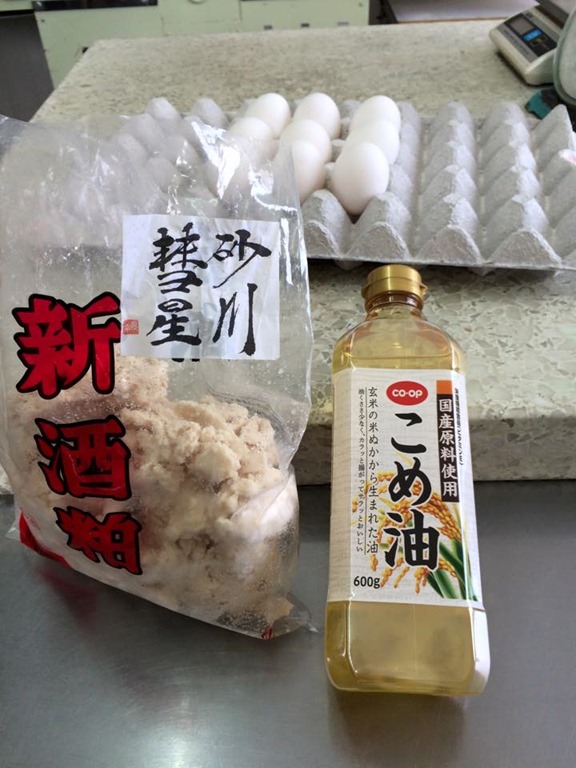 米粉、砂川彗星の酒粕など「お米」にこだわったシフォンケーキの材料です。