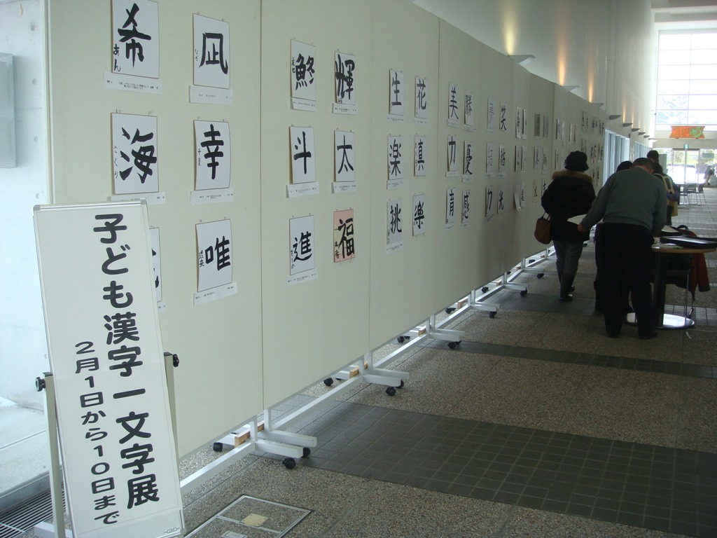 写真は昨日から地域交流センター「ゆう」で開かれた「子ども漢字一文字展」です。文化協会が主催しています。