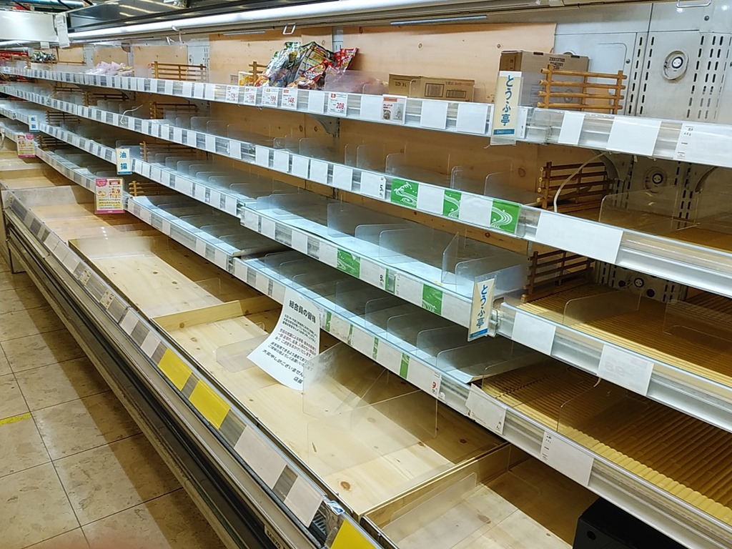生鮮食品を中心に空っぽです。こんなの見るの初めてでした。