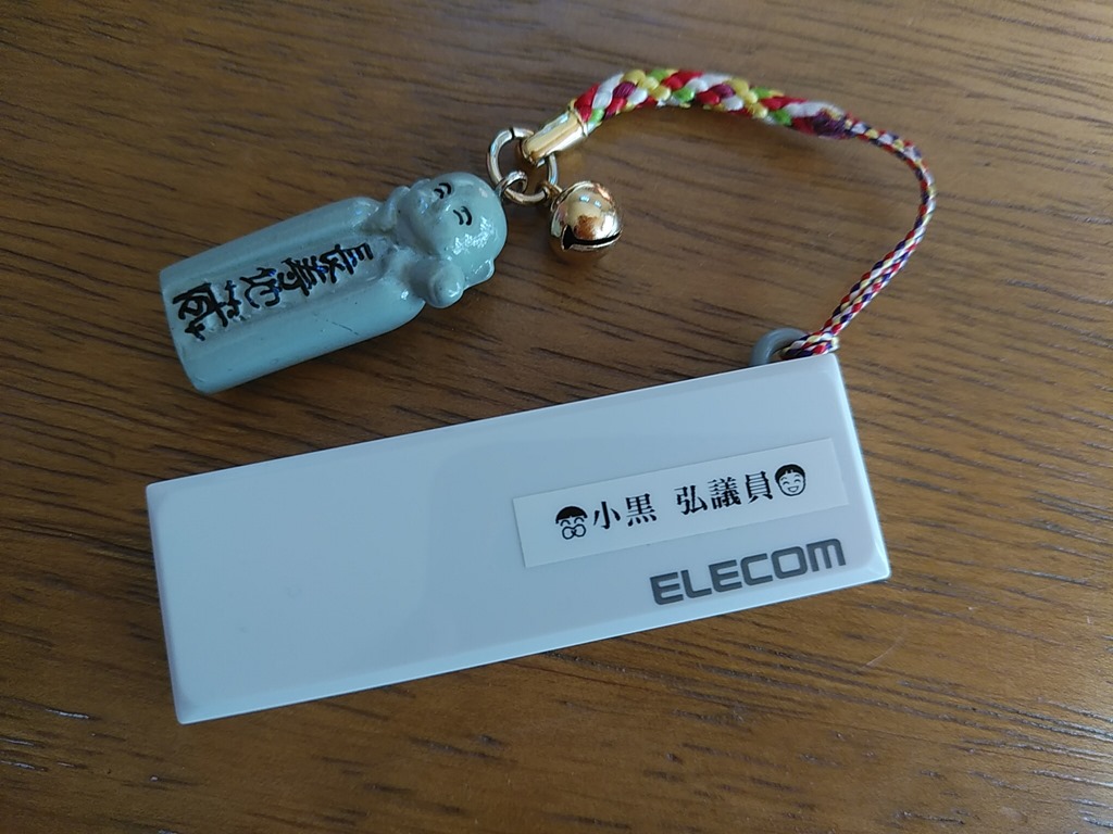 メモリーは小さいので以前に議員の視察で長野県佐久市に行った時、購入した「ぴんころ地蔵」のキーホルダーを付けています。