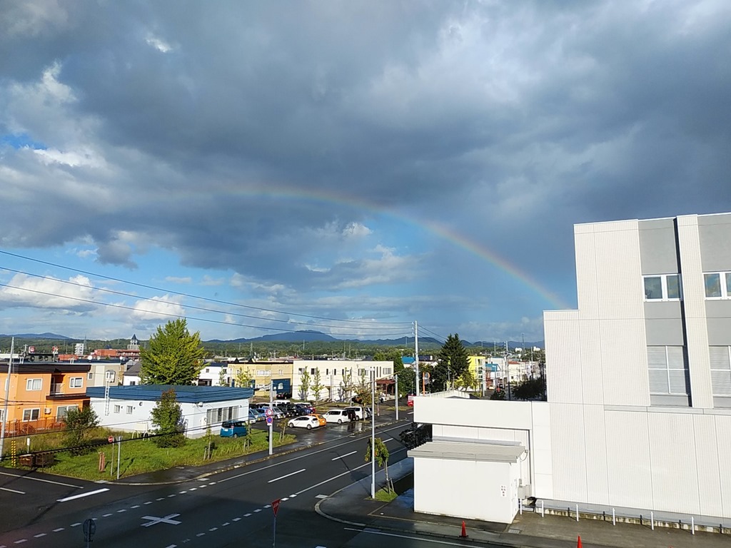 市立病院から出でいるような虹です。しばらくボーと見ていました。議会が終わって自分の議員控室から石山方面を眺めるのが好きです。