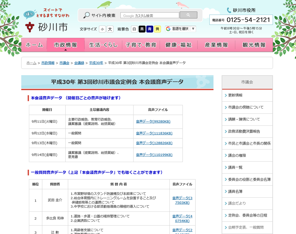 砂川市議会のHPに9月議会の「音声データ」がUPされました。