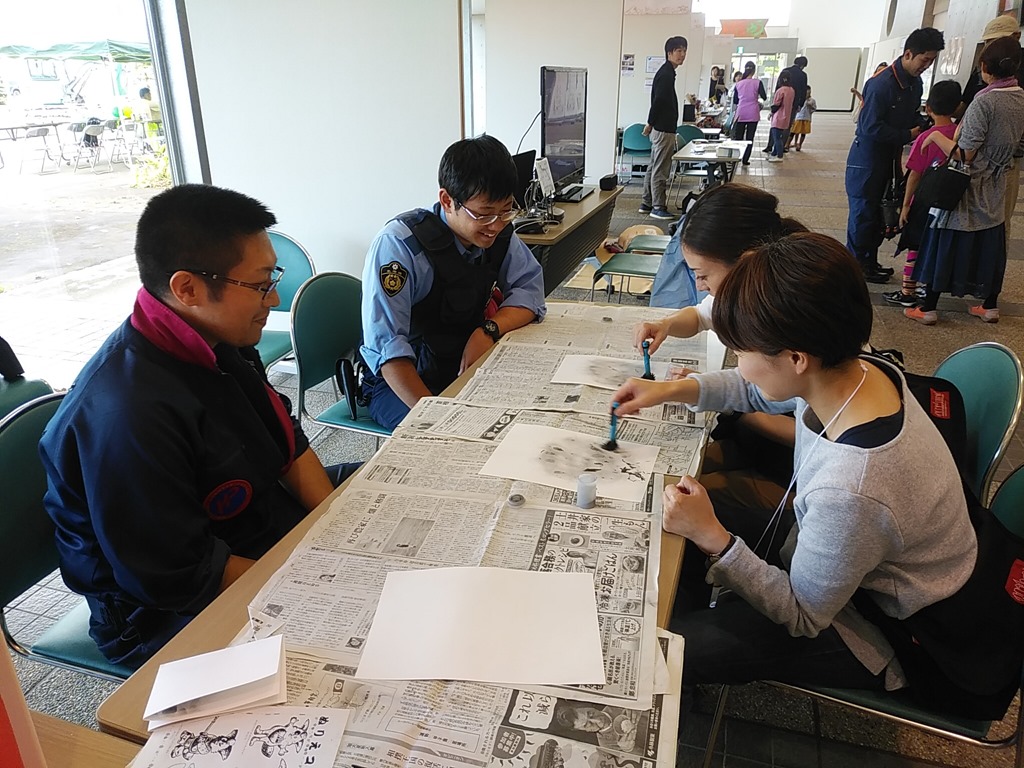 こちらも体験ブースですが、左の写真は砂川警察署の鑑識体験です。こんなの初めてですネ。若い人達の柔軟な発想は楽しいです。