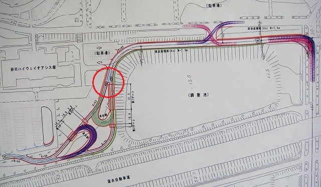 上の写真は、右の完成予想図の〇の部分を写したものですが、現在、NEXCO 東日本から発注されている「管理施設新築工事」や「ETC設備工事」、「受配電自家発電設備工事」の現場になりそうな箇所です。