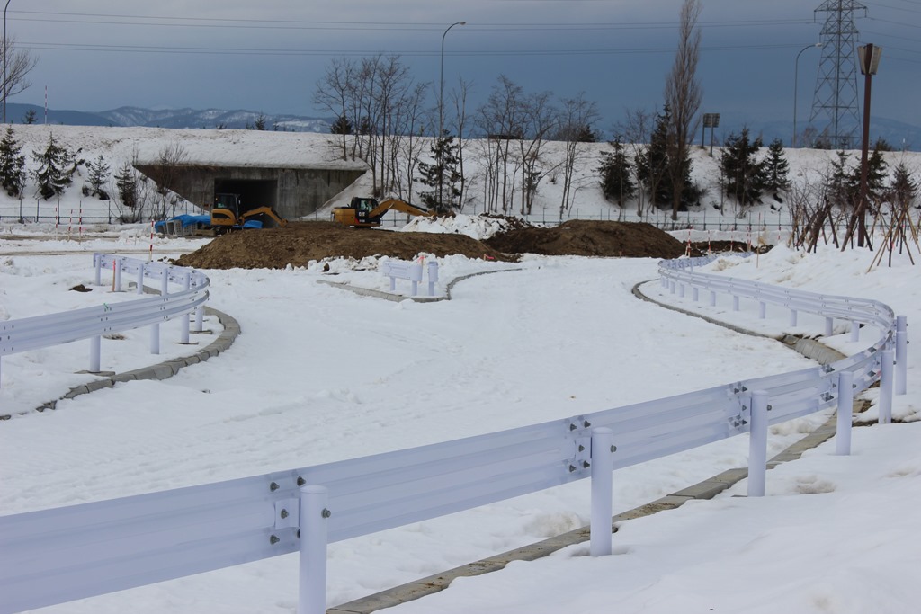 これまでのところ雪が少ないのではっきりガードレールも取り付けられているのが分かります。1月の社会経済委員会では、この工事、関連の給水管移設工事も昨年12月に完了しています。