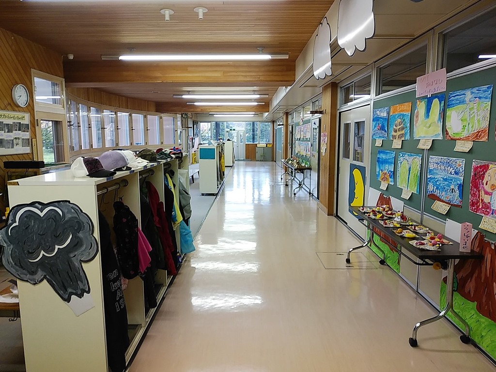 前回の統廃合後に出来た小学校の教室はオープン教室になっていますが、北光小は各学年とも壁で仕切られています。廊下も手洗い場もキレイでした。