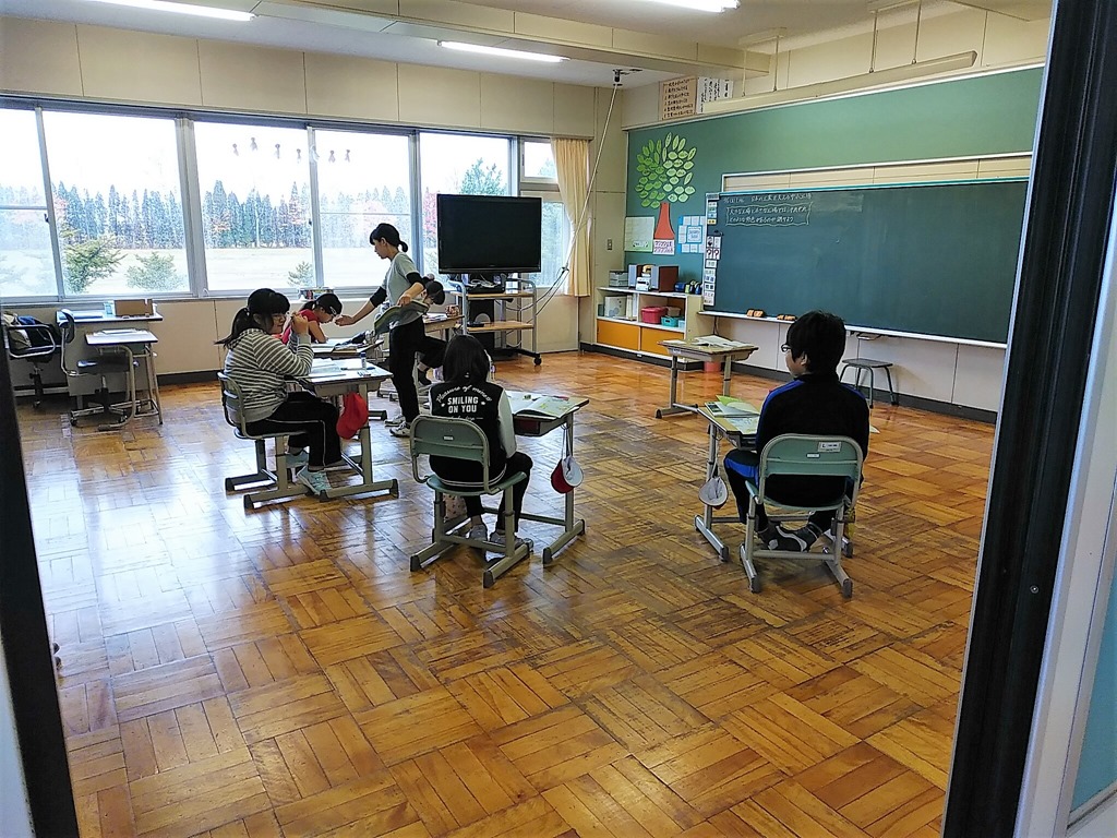 私はこの教室にほぼ一時間参観させていただきました。複式学級での「自習」の時間が気になっていたからです。
