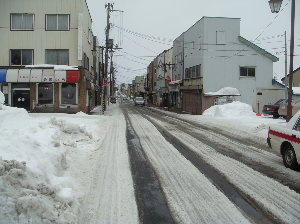 本日の砂川は気温+4℃で、道路の雪が融けて市内各所に水溜りができていました。
