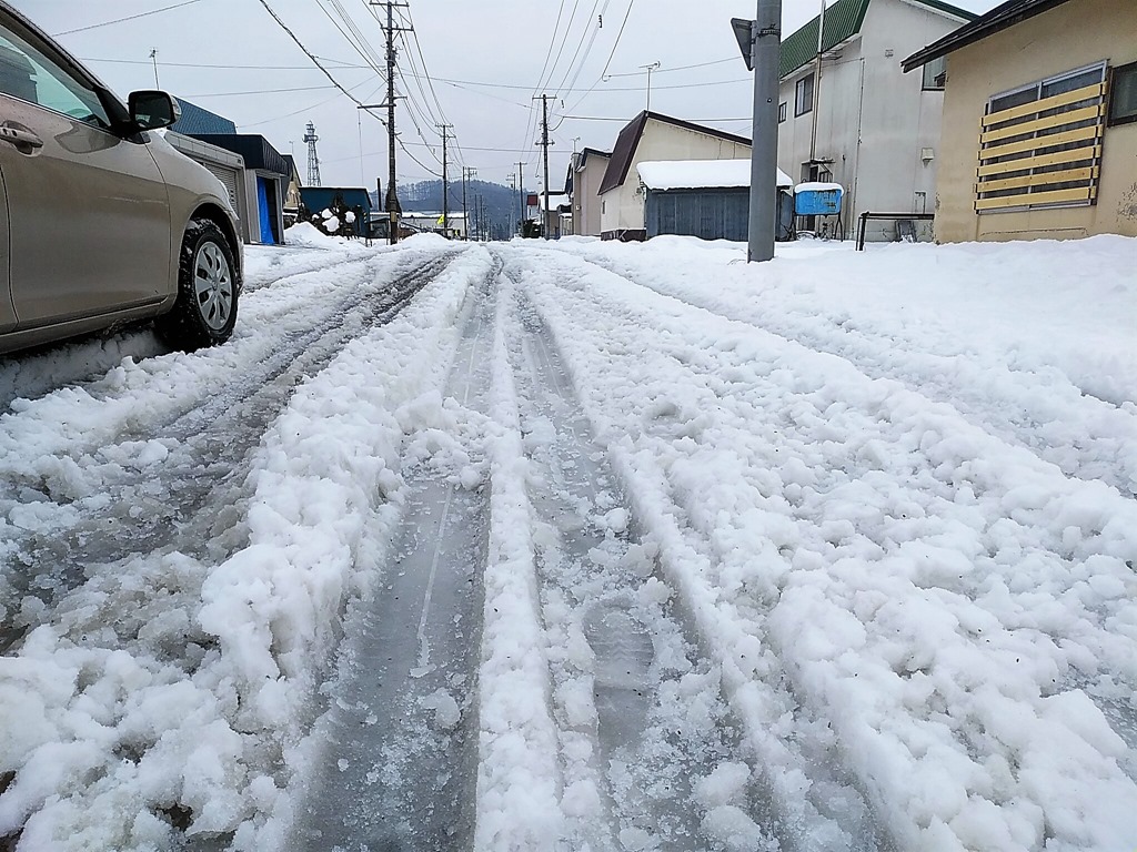 市や民間の除雪車がグチャグチャ解消のための作業をしているのに出会いましたが、まだまだ一部です。