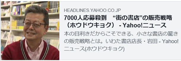 もう、メディアに出て、出て、大変有名になってしまった「いわた書店」ですが、Yahooニュースにとりあげられています。