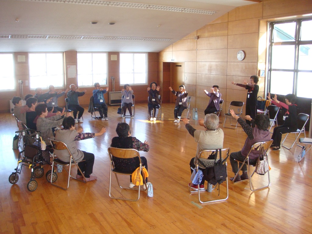 本日も良い天気となりました。午前10時から東地区コミセンで運動サロン「ニコニコ広場」がいつものように開かれて、皆さん元気いっぱいで運動をしました。