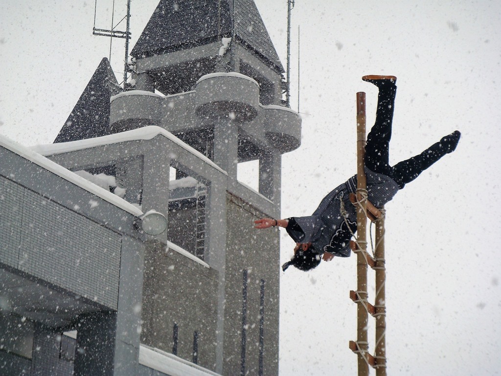寒くて雪が降り続ける中、素晴らしい演技が行われました。何回か書いていますが、この見事な演技をもっとたくさんの市民の皆さんに、そして、良い条件の時に披露できたらと思います。