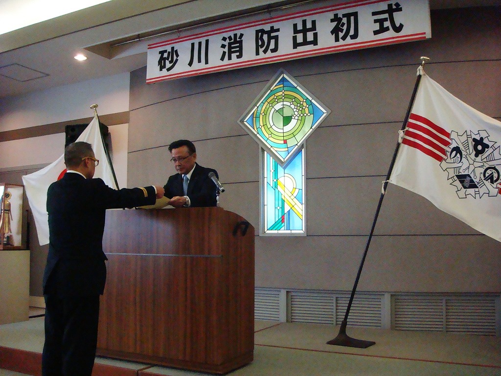 砂川市内では1月2日に男性一人が亡くなる火災が発生しました。しかし、今後は無火災・無災害を願いたい出初式でした。