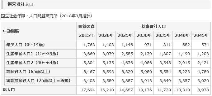 上の写真は「国立社会保障・人口問題研究所」が昨年3月に発表した最新の人口推計「砂川版」。