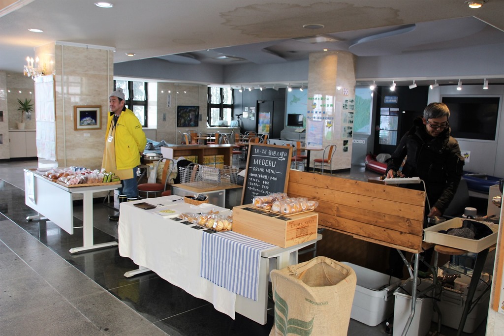 また、右の写真ですが、管理棟ではわかさぎ釣りシーズン中(1月、2月)、暖かい飲み物や軽食が販売されます。