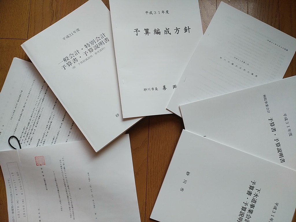改選期とは言え、当初予算はほとんどの事業が網羅され予算書も分厚く、条例改正などの議案書もたっぷりです。