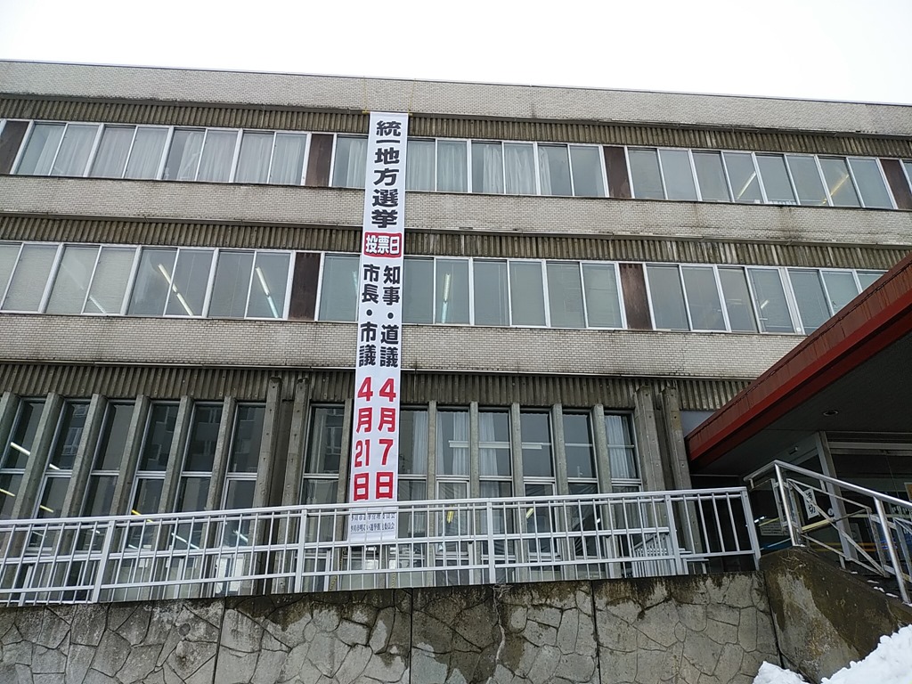 上の写真は本日、市役所に行くと庁舎に懸垂幕がかかっていました。もうすぐ選挙だ!って言ってるみたいにバタバタと風に揺れていました。