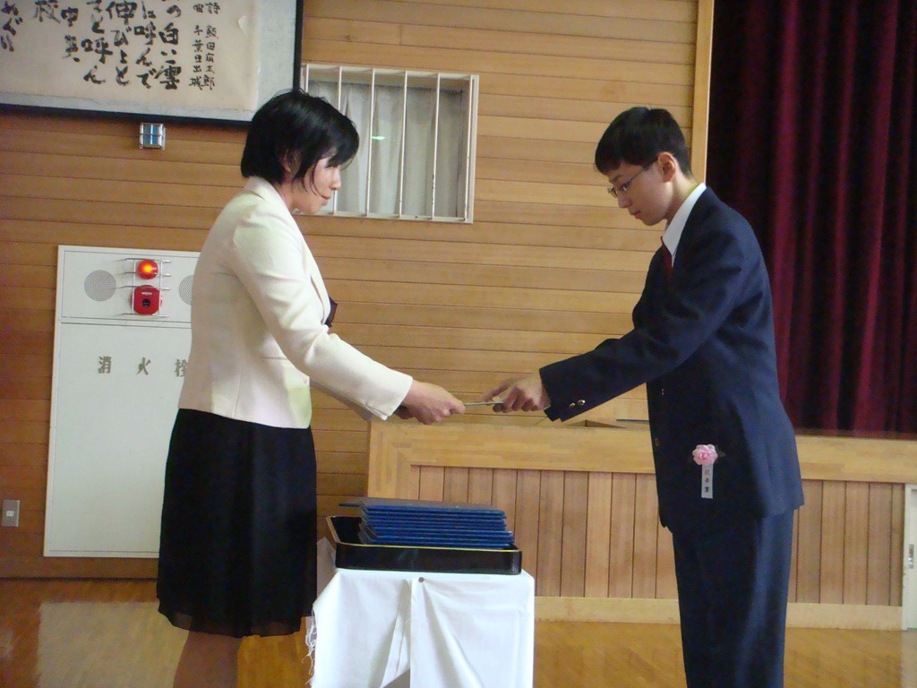 校長先生から卒業証書をもらった後、PTAの役員さんからファイルを一人ずつ受け取ります(右の写真)。