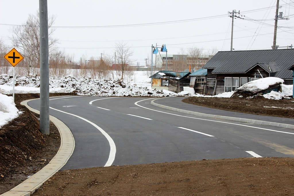 市道「東1線」は中央小学校の前を通る道路ですが、JRの狭いガードを通る市道「南1丁目線」との交差点がクランクになっていて、その解消が要望されていました。