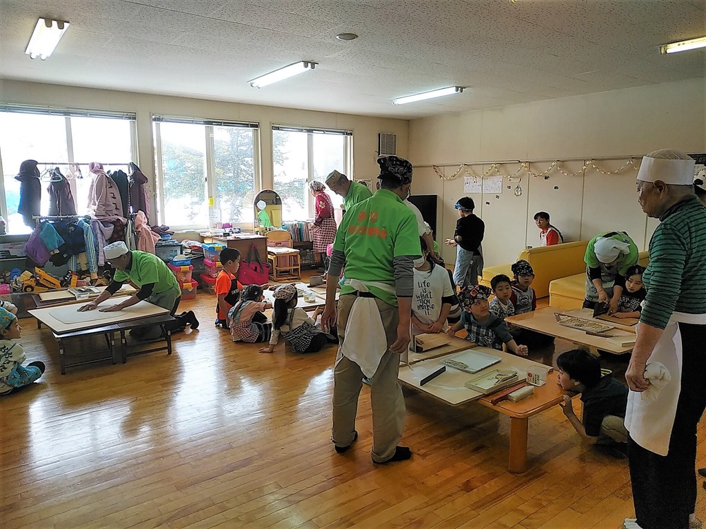 毎年4月に行っている北光学童保育所(北光竹の子ホーム)での手打ちそば体験が「砂川手打ちそば愛好会」の指導で行われました。