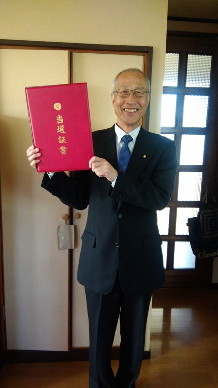 当選証書は7枚目ですが、菅官房長官の「令和」発表を真似てみました。