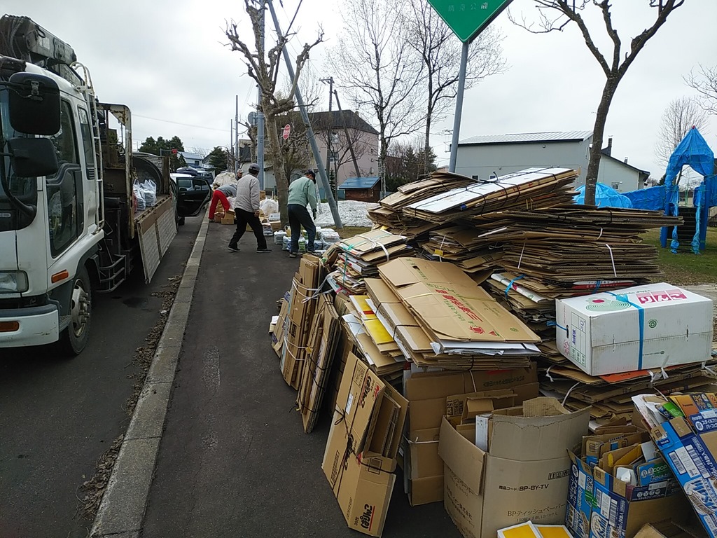 12月に一年の最後の廃品回収を行って以来の晴見町内会です。皆さんが物置等に溜めて置いていただいた資源ごみを回収。さすがにたくさん出ました。