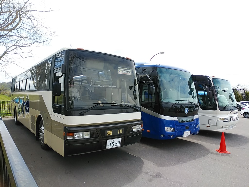 右の写真ですが、駐車場に停まっていた野球部のバス。左から滝川西、クラーク、深川西の大型バスです。