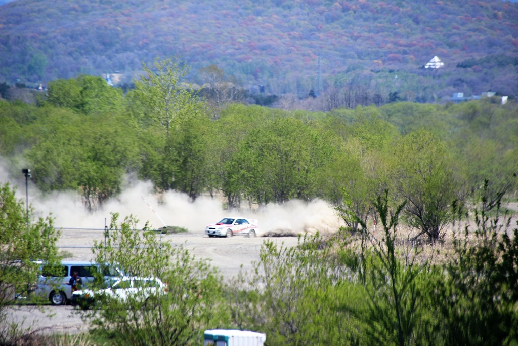 大きなエンジン音と土煙が上がっています。ダートトライアルコースで爆走中。
