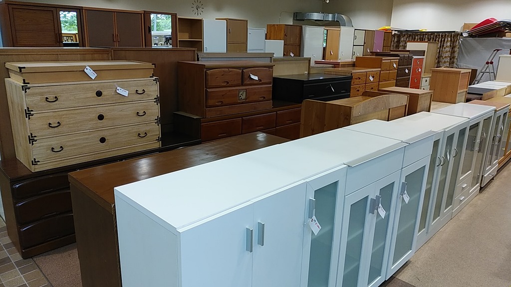上の写真は自転車や家具類を修理する部屋です。この事業のスゴイところは修理が得意なボランティアさんが粗大ごみで出された物を再生して販売するところです。
