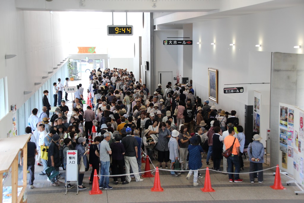 相変わらずの人気で私の行った午前9時30分ごろには交流ゾーンにも大変な行列(左の写真)。もちろん販売される大ホールも大行列です。