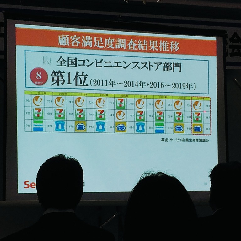 左の写真ですが、数ある全国のコンビニでも顧客満足度では第一位の企業です。また、年間の来客数は2億4,000万人だそうで、道民540万人で割ると年間44回/1人の来店。さらに、1年間で最も来店回数の多かった人は970回という話も。