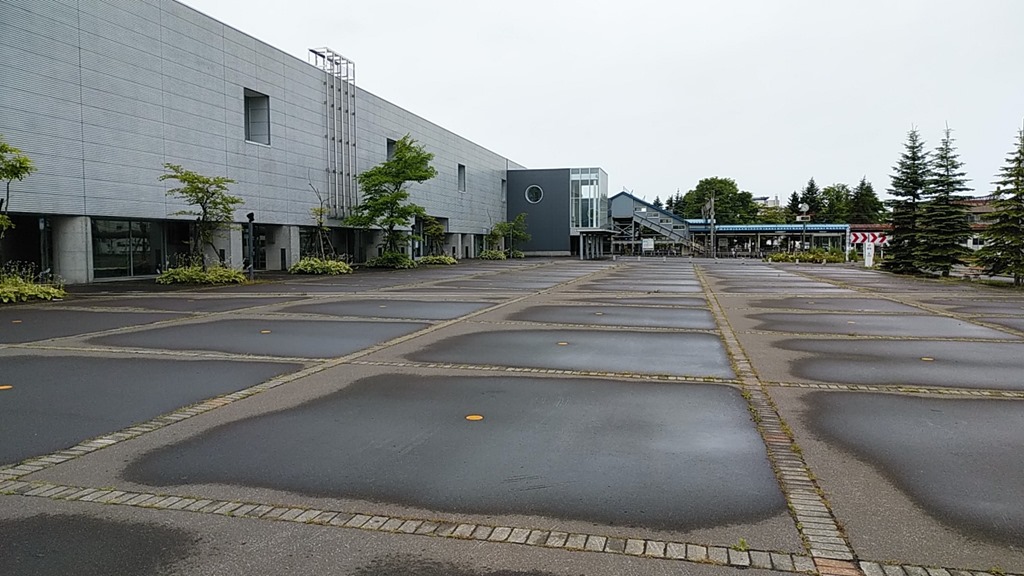 朝からの雨も上がった午前10時21分ごろ、国道沿いのアイアイ前もパレードの様子はなく、その後、地域交流センター「ゆう」のイベント広場に行きましたが、写真左のような状況。