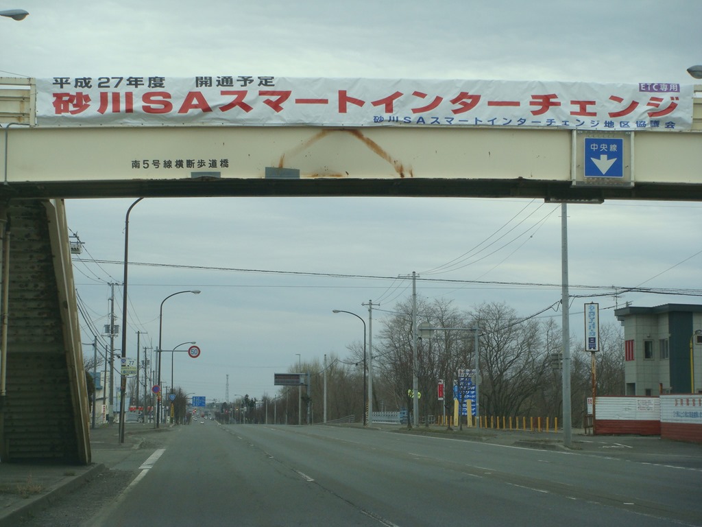 以前、私のHPで奈井江町の歩道橋に「まちづくり」を広報する横断幕が架かっていて、「奈井江町でできるのに砂川でもできないのか」と書いたことがありました。