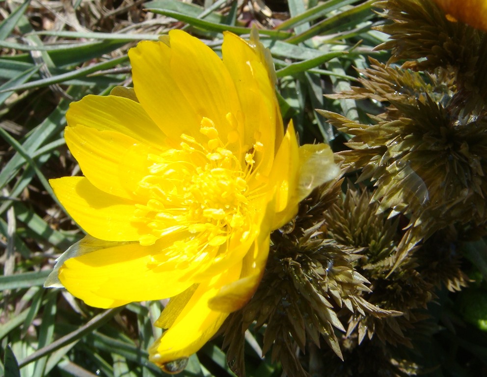 写真は福寿草ですが、朝露が日差しを受けてキラキラと輝いていたので思わずシャッターを切りましたが、デジカメではあまり雰囲気が伝わりませんネ。